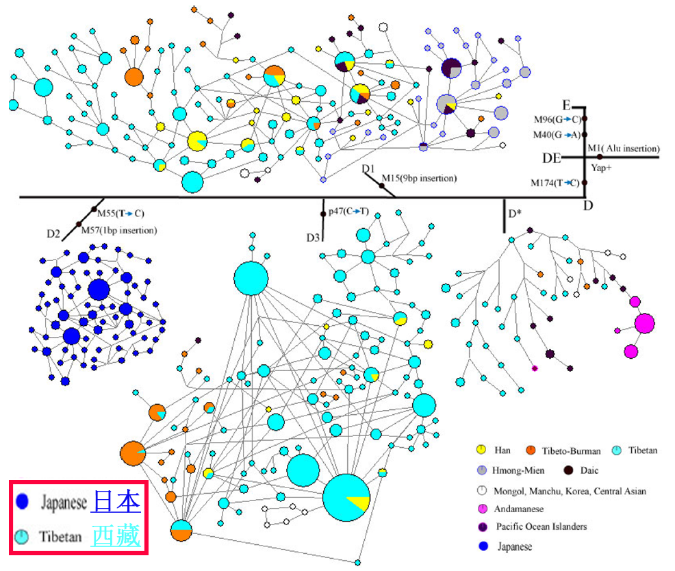在东亚,几乎所有的YAP样本都属于单倍群D。东亚特有的Y染色体单倍群D型(M174)仅高频分布于西藏、日本和安达曼群岛。安达曼群岛居民中D*的发现,似乎是对走出非洲的“南方沿海路线”的有力支持。