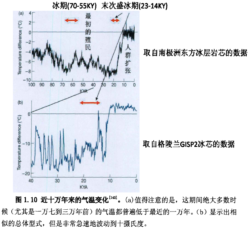 观察近十万年的气温变化,1.7万年之前气温比最近1万年低接近10摄氏度。当时的人类的生存十分困难,而人类的农业也是在1万年前诞生的。