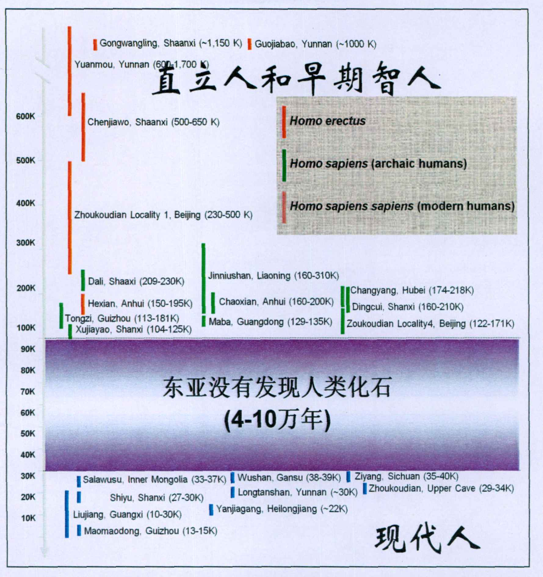 从化石发掘来看,东亚人类化石的发掘有一个明显的断层——