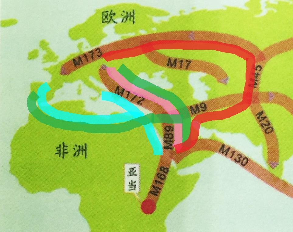 上图是更具体的迁徙路线,看不清不要紧,你只要知道这些都是有根据的Y-DNA的科学的分析结果就够了。