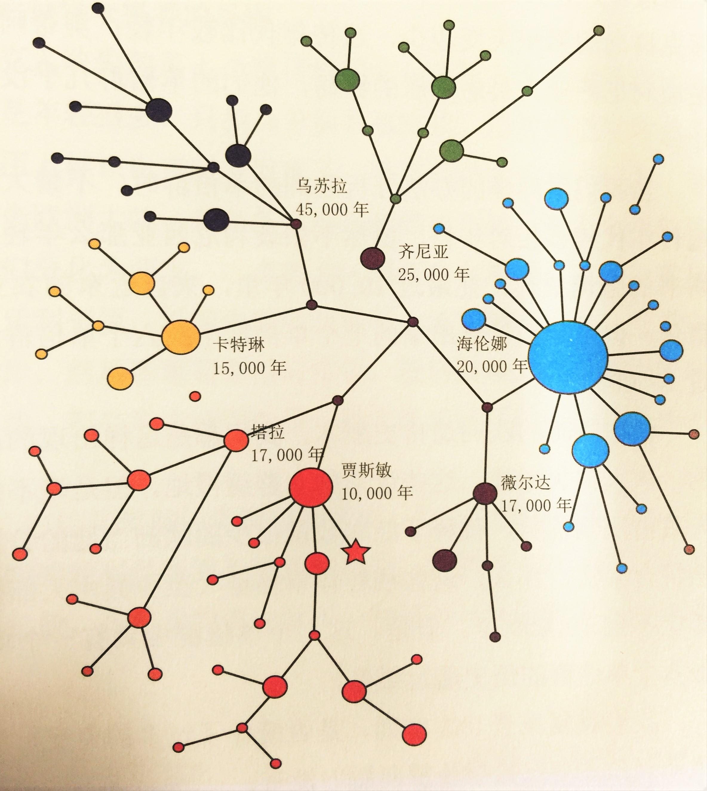 1. 这是欧亚Y染色体谱系,就像一个大的family tree,红色数字代表多少千年前;