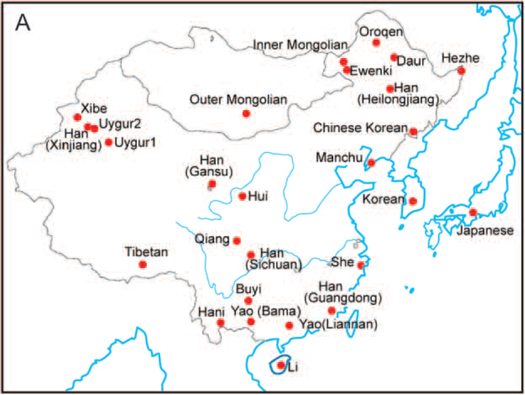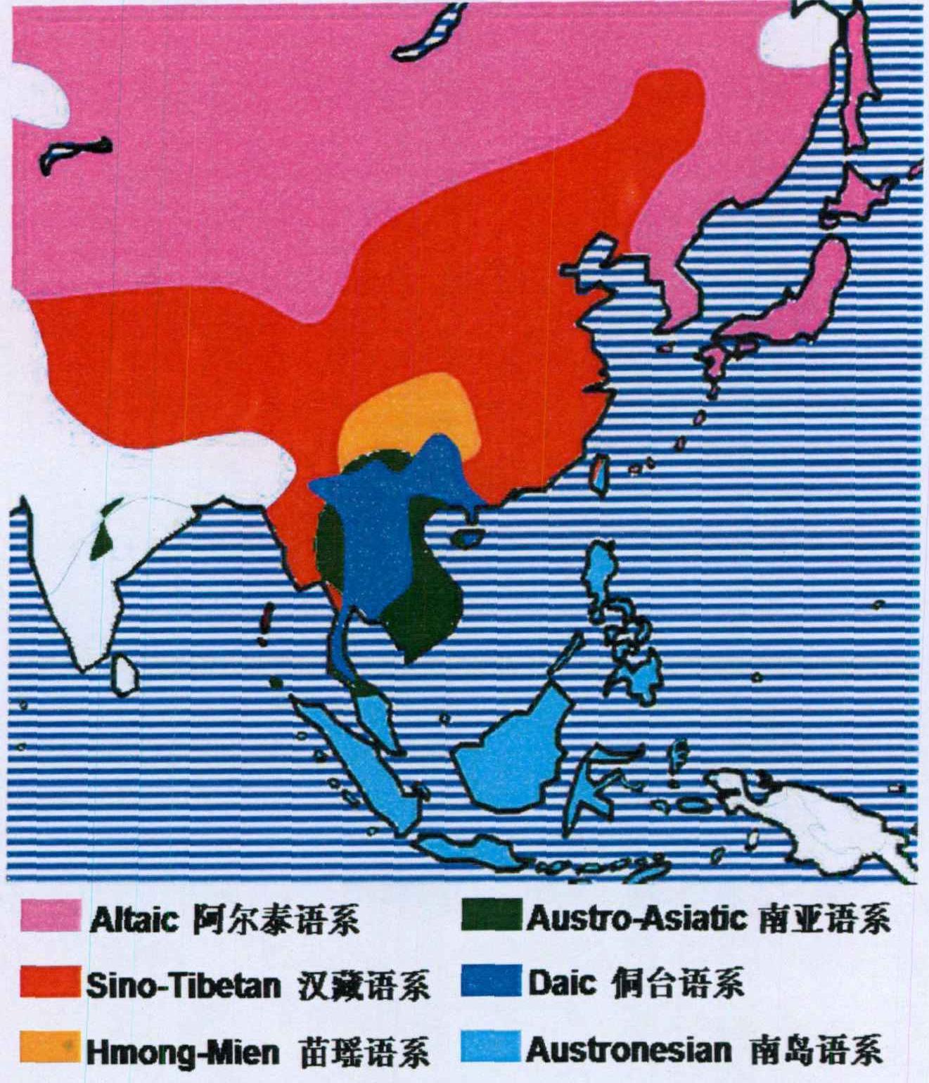 东亚地区的人群主要分属6个语系:南亚语系、苗瑶语系、汉藏语系、侗台语系、南岛语系以及阿尔泰语系。