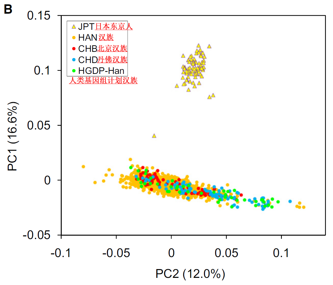 1.日本人和汉族非常接近,图中右上角那一坨都靠在一起;