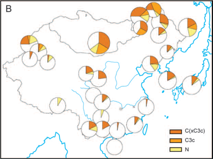 C型在北方占了非常大的比重~~我们暂且把这些人C型和N型看作是蒙古人。