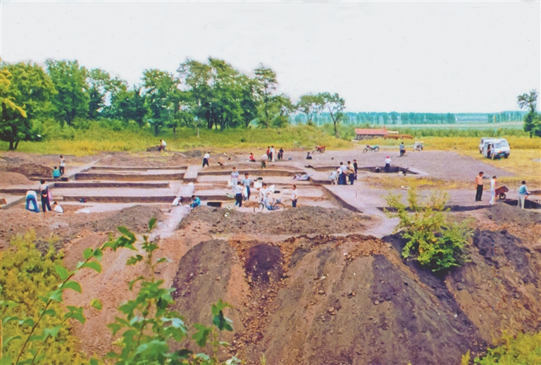 就在这一年,哈尔滨市文物管理站响应国家的号召,开始了第二次文物普查。在副站长尹开屏的主持下,由哈尔滨师范大学历史系师生、各区图书馆、各乡文化站组成了一百多人的文物普查队伍,按区分成小组,逐乡、逐村逐户进行走访调查。时任农场砖厂厂长宋景泉,把这个信息报告给了文物部门。当时正在道里区进行文物普查的尹开屏得到了这一信息后,立即带领人马来到了阎家岗,亲眼看到了遍地的古动物化石,他们还进行了大量调查,走访了阎家岗农场的职工和周围的农民,掌握了大量的第一手材料。经验丰富的尹开屏意识到,这应该是一个有价值的遗址现场,他随即向省文物管理委员会进行了报告。随后一支由黑龙江省考古队、黑龙江省博物馆、中国科学院古人类与脊椎动物研究所、哈尔滨市文物管理站等单位组成得考古队,于当年9月开进了阎家岗农场。