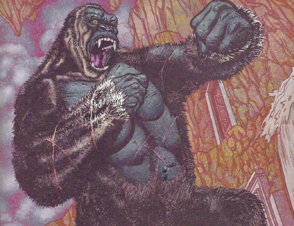 前传漫画《哥斯拉:统治》也出现了一个远古金刚,它曾经占据了哥斯拉的巢穴,虽然很强但我觉得还不是最强的金刚王。