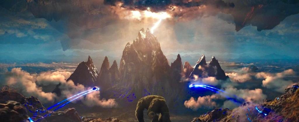 再来说一下,金刚王的事情,金刚坐在王座上面拿着战斧,电影当中给到了一个非常宏伟的背景音乐,实际上就是暗示此刻金刚是一个王者。