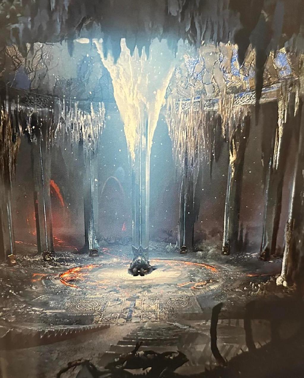电影当中只给到了正中间的一个王座,实际上有9根柱子,中间一根周边8根,每一个柱子上面都是一个王座。