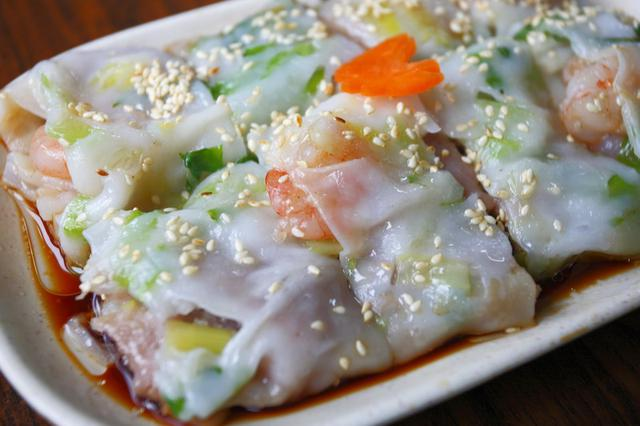 广式肠粉品尝起来细腻爽滑、还有一点点韧劲。肠粉价廉、味美,老少咸宜,妇孺皆知,从不起眼的食肆茶市,到五星级的高级酒店,几乎都有供应。