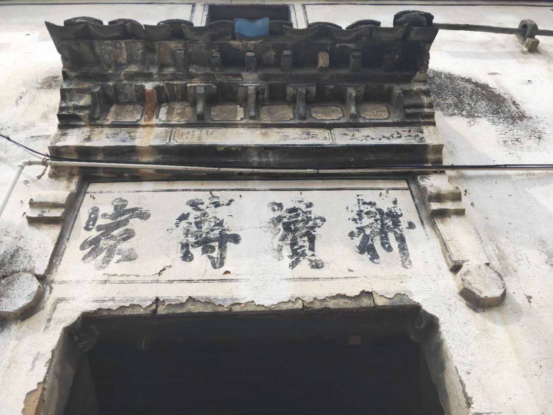 老台门有时也会演化成书院,在大唐镇银杏村的下蔚村有座楼氏书院,始建于嘉庆年间。书院门台屋檐上有三块石雕画,中间为菱形雕花,旁边为两个正方形的的雕画,门檐凌空跃出,层次叠加,向上微微乏起,下面镶边的“南极星辉”四个字。