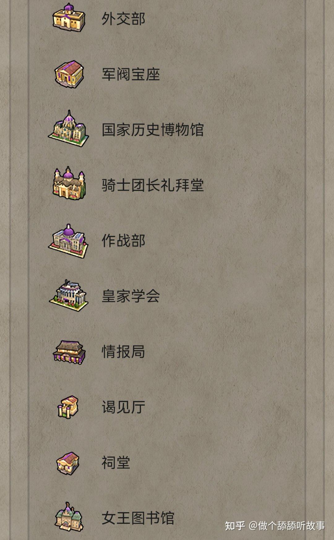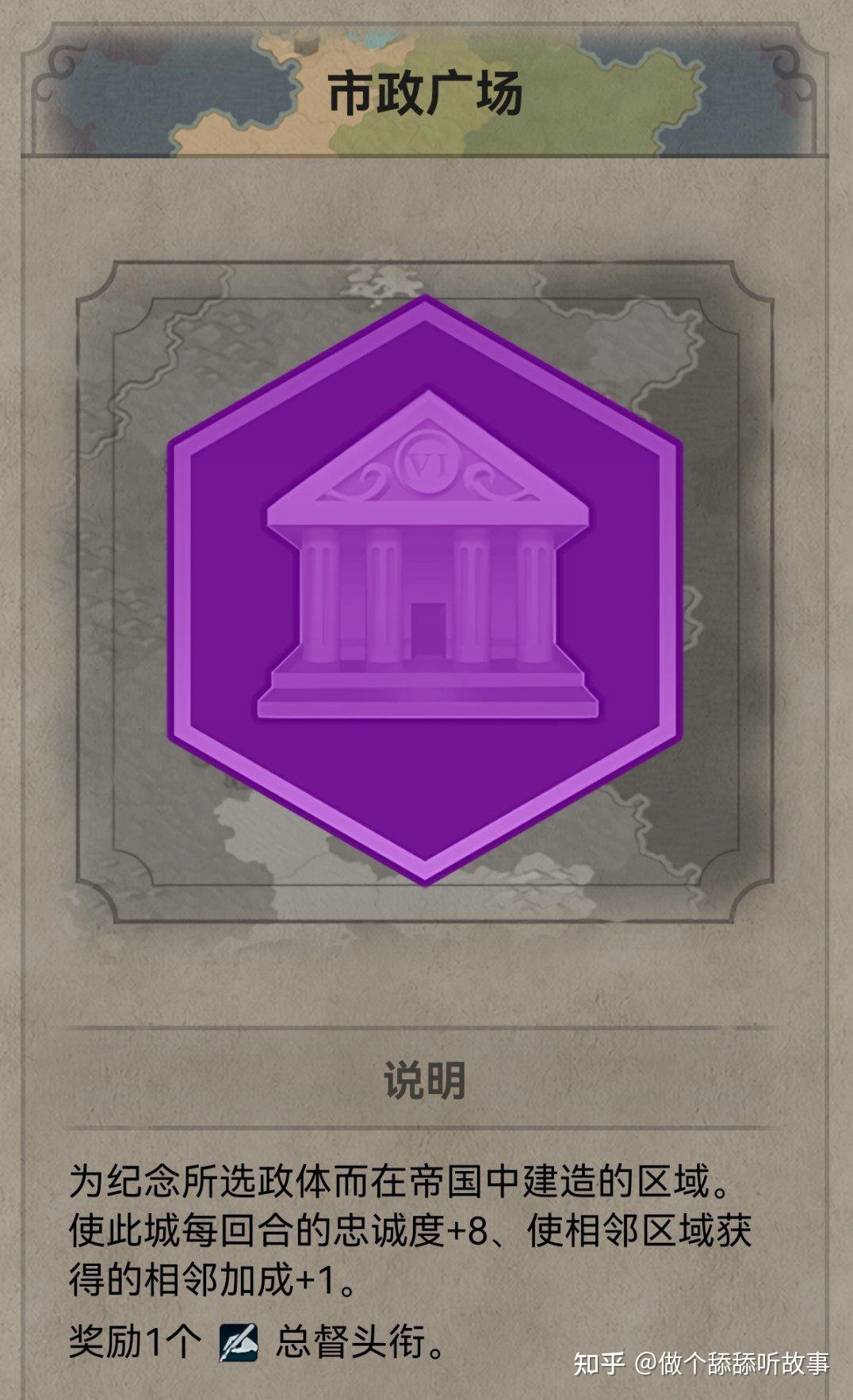送你总督头衔区域与每个建筑都送哦各种能给文明带来强力buff的建筑每个级别的政体建筑你可以三选一修建,具体是什么我就不介绍了,主要谈谈机制