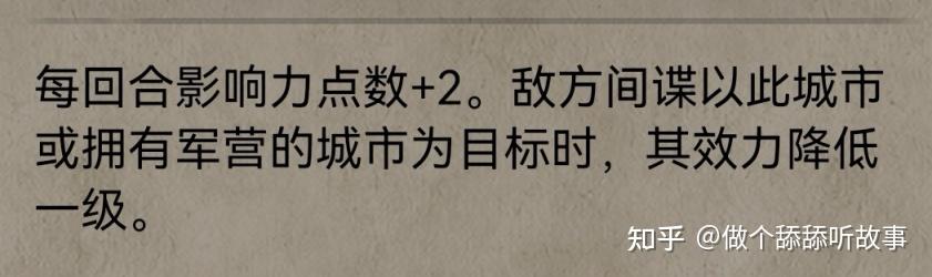 一级建筑领事馆,给这个城市或者所有带军营的城市防间谍buff